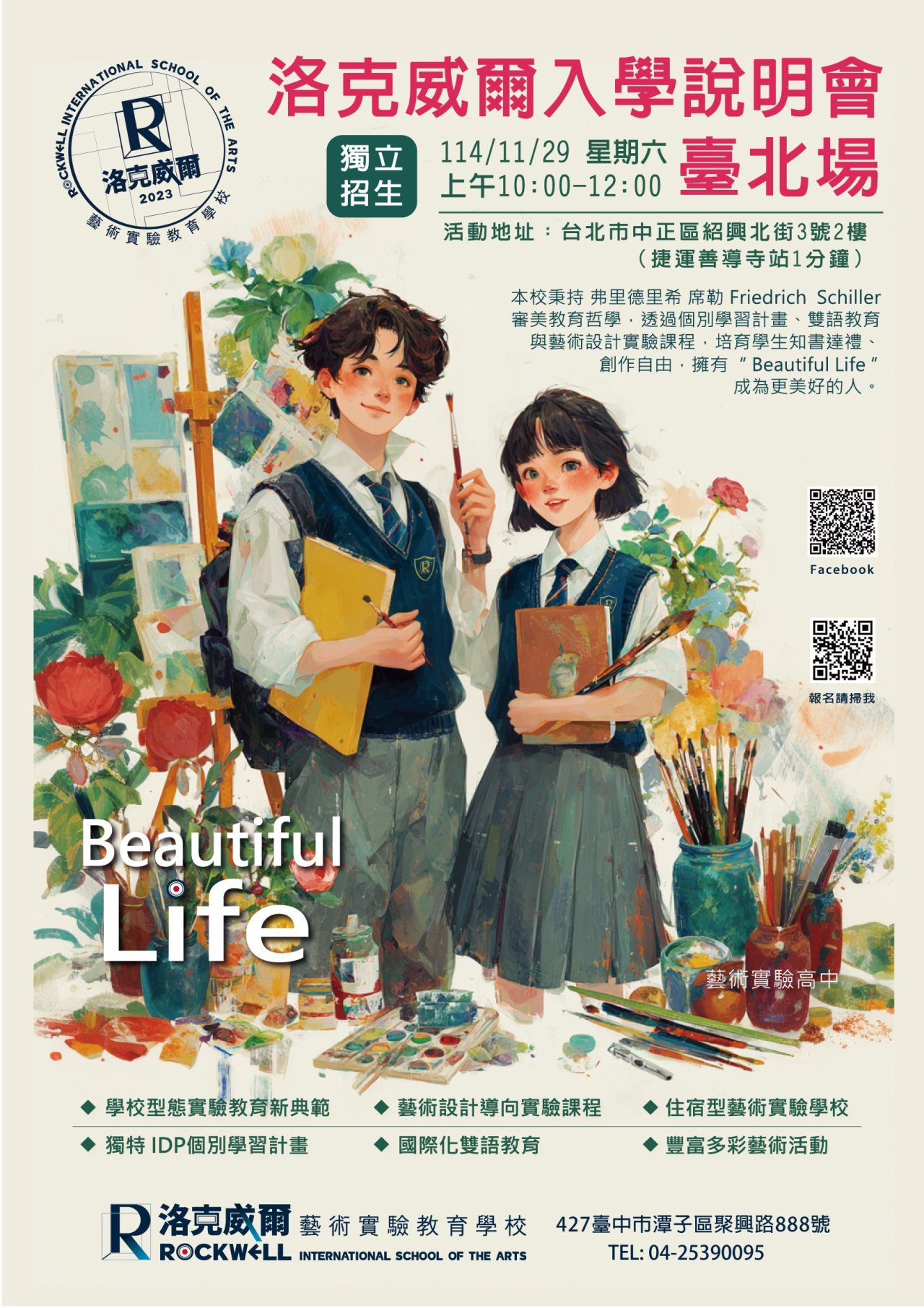 臺中市私立洛克威爾藝術實驗教育學校「115學年度入學說明會—台北場」活動訊息